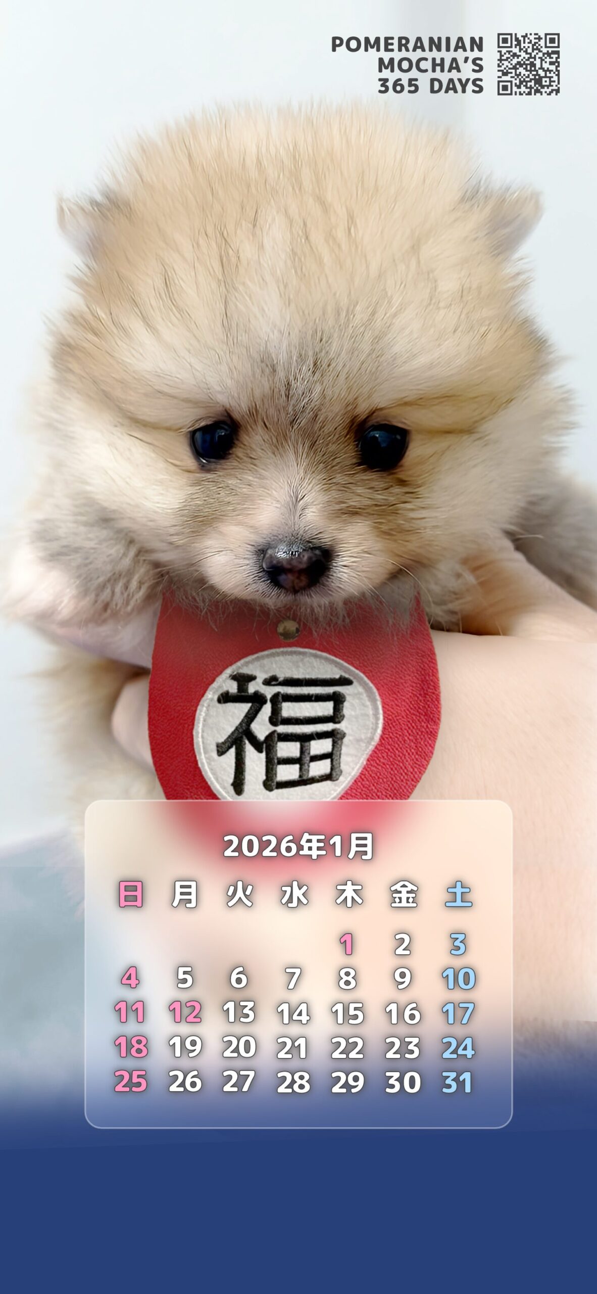 ポメラニアン モカ365日 2026年1月無料待ち受けカレンダー