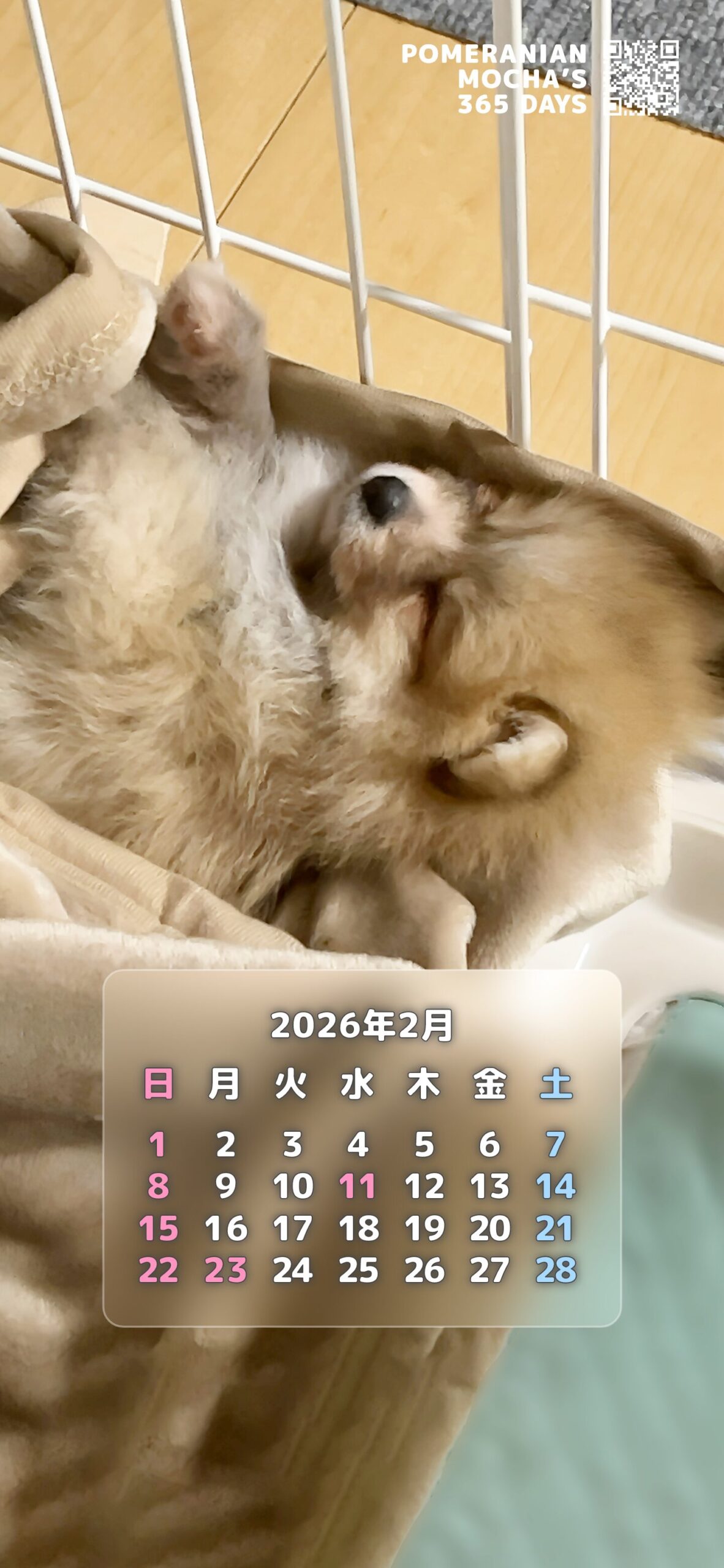 ポメラニアン モカ365日 2026年2月無料待ち受けカレンダー