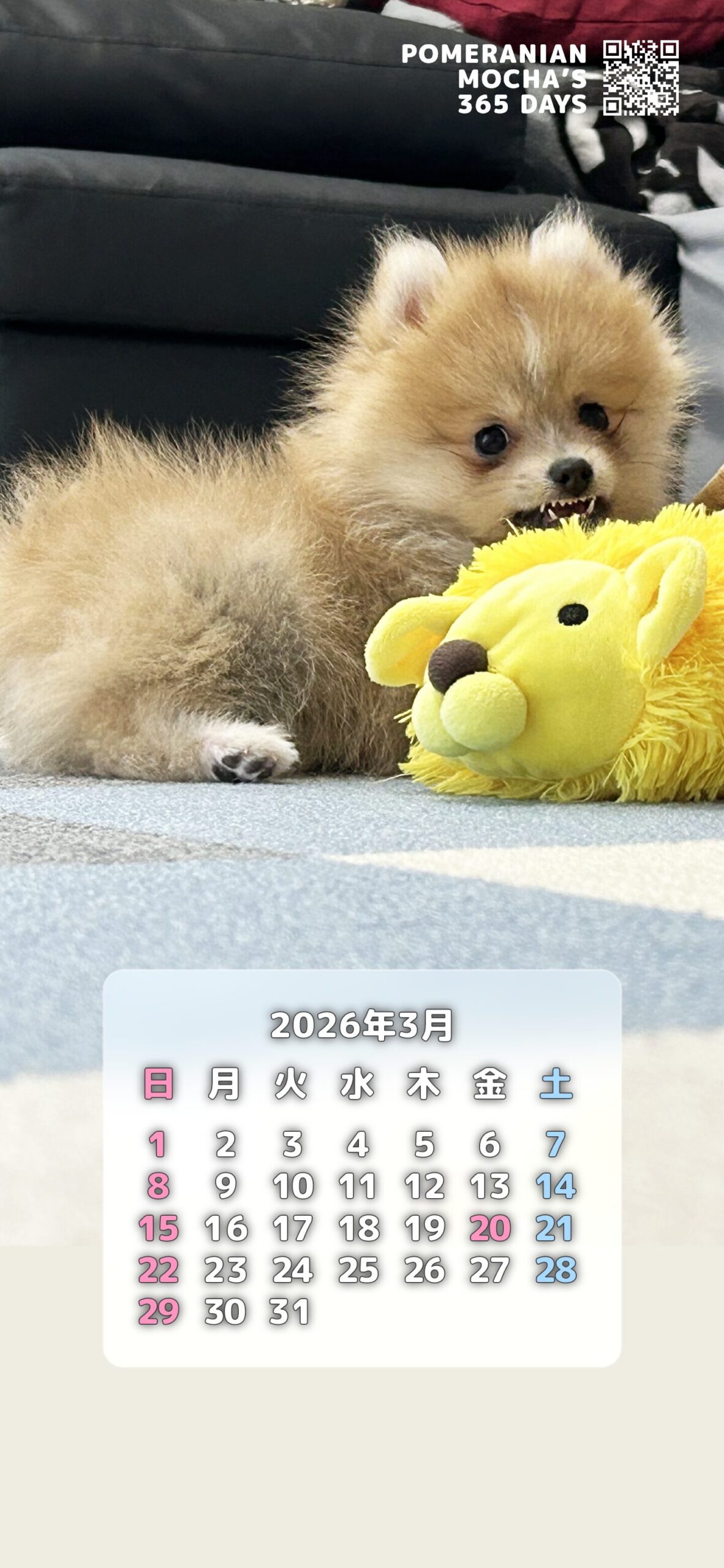ポメラニアン モカ365日 2026年3月無料待ち受けカレンダー